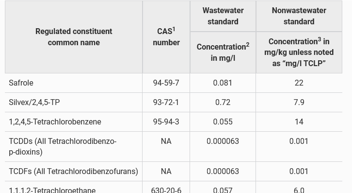 Here is the referenced table of treatment standards: https://www.ecfr.gov/current/title-40/chapter-I/subchapter-I/part-268/subpart-D/section-268.48